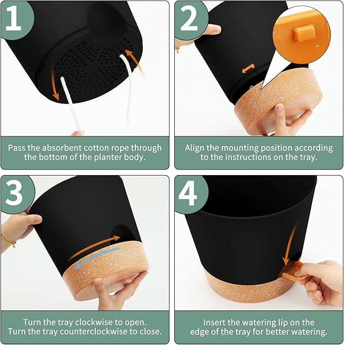GARDIFE 10/9/8 inch Plant pots, planters for Indoor Plants, self Watering Plant Pot, Flower pots, Black
