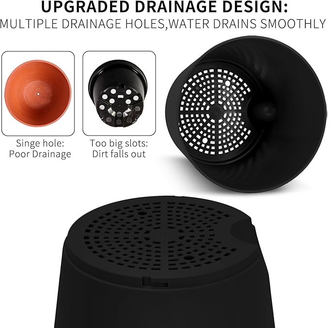 - 【Environmental Material】Made of durable recyclable plastic,solid plastic plant pots protect plants and soil. Premium polypropylene planters feel sturdy in hand but not too heavy. Thick sidewalls 4mm in size keep everything in place.