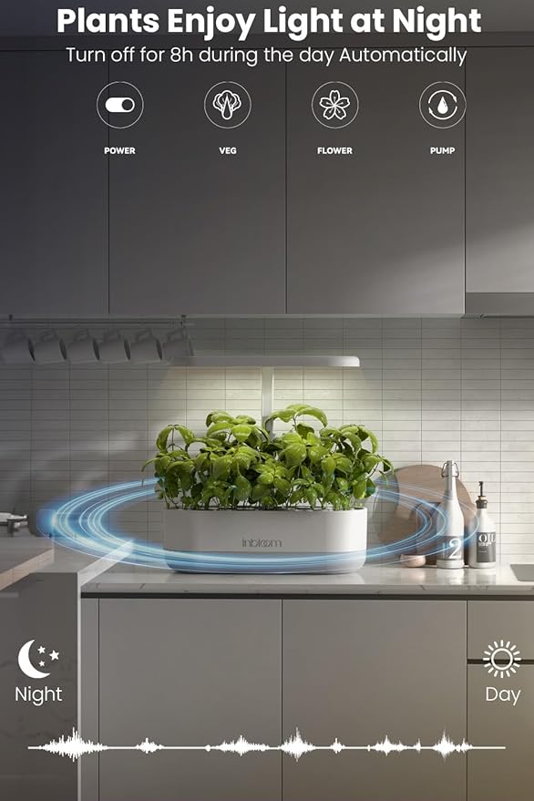 - [4.2L Super-Capacity Water Pump]: With its immense water pump capacity and circulation every 30 minutes, plant roots enjoy full oxygen and nutrient absorption. The large water tank can sustain your plants for 15 days, allowing you to take short trips without worrying about watering.
