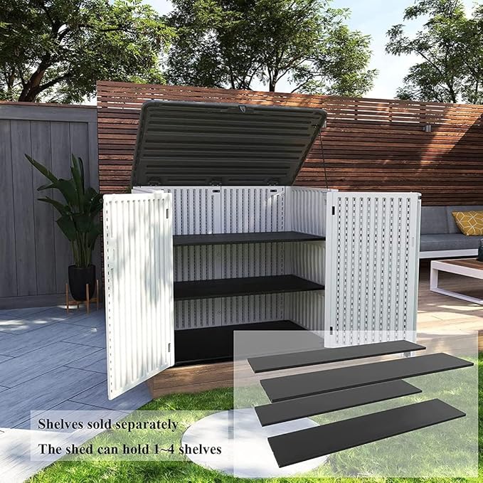 - 【To Enhance Its Usability】— We provide additional accessory KINYING black metal shelves to enhance its usability, the small shed fits 4 shelves at most, but the shelves need to be purchased separately.