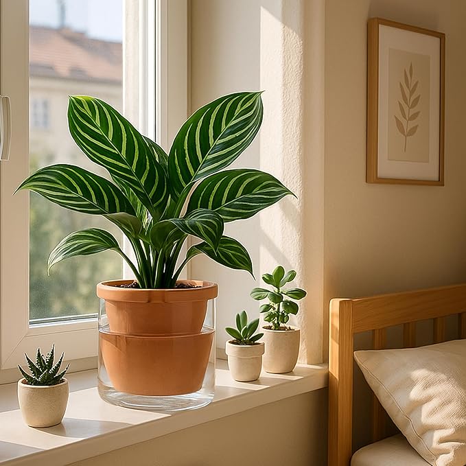- Stylish Design with Perfect Combination – Newly designed self-watering pot with magical combination of terracotta succulent pot with a glass reservoir. Functional, attractive and stylish plant pot set.