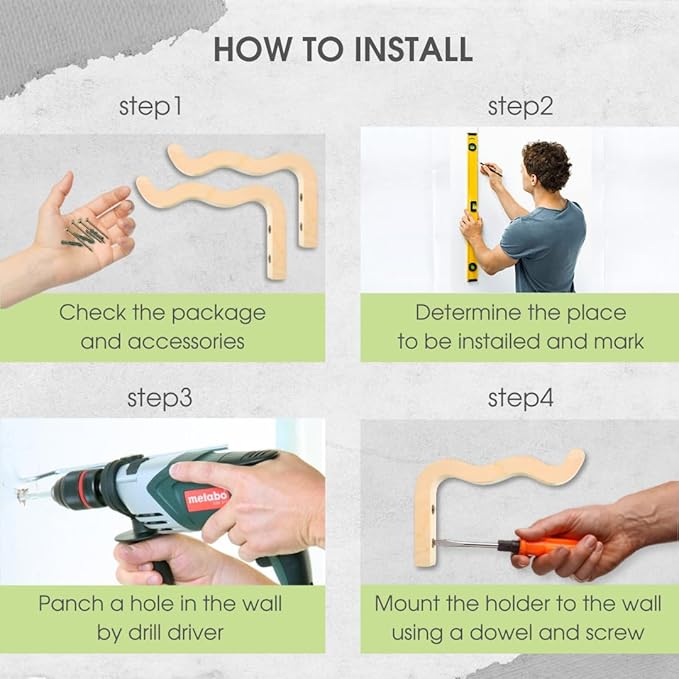 - EASY INSTALLATION: With the included hardware and easy straightforward instructions, mounting our plant hanging bracket for wall is a breeze. Our hook for plants comes come with 2 hooks, 4 screws, 4 dowels and 4 self-adhesive screw for installation.