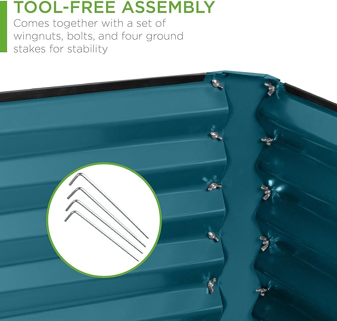 Best Choice Products 8x4x2ft Outdoor Metal Raised Garden Bed, Deep Root Planter Box for Vegetables, Flowers, Herbs, and Succulents w/ 478 Gallon Capacity - Peacock Blue