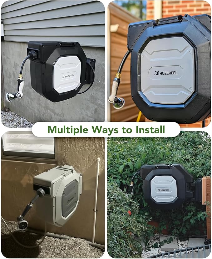- 【Heavy Duty for Long Term Using】: The HOZEREEL hose reel is well built and no leaks in normal everyday use. The hybrid hose is strengthen construction and the connect fittings are made of brass.