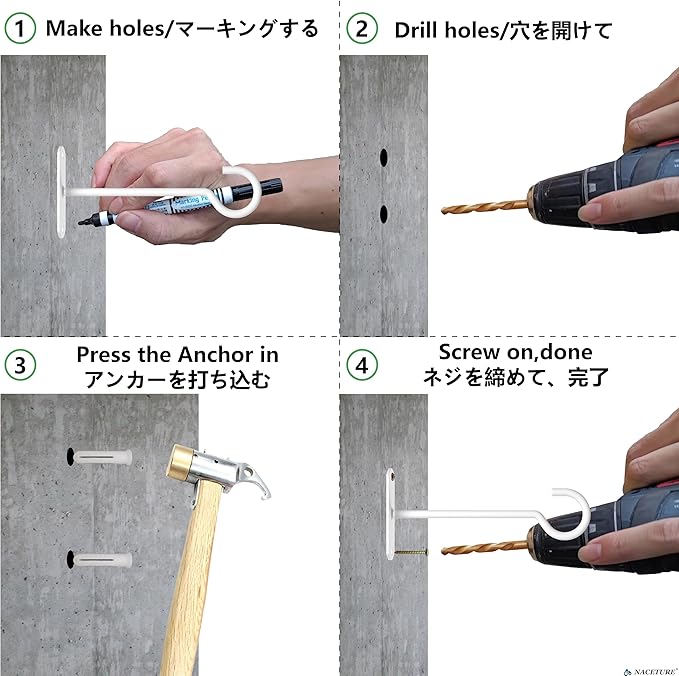 - ๐จ STURDY AND DURABLE CONSTRUCTION - NACETURE Plant hanger hook design ensures stability and strength, suitable for interior and exterior use, indoor plant hangers from ceiling, kitchen, balcony, garden, or any place in your home.