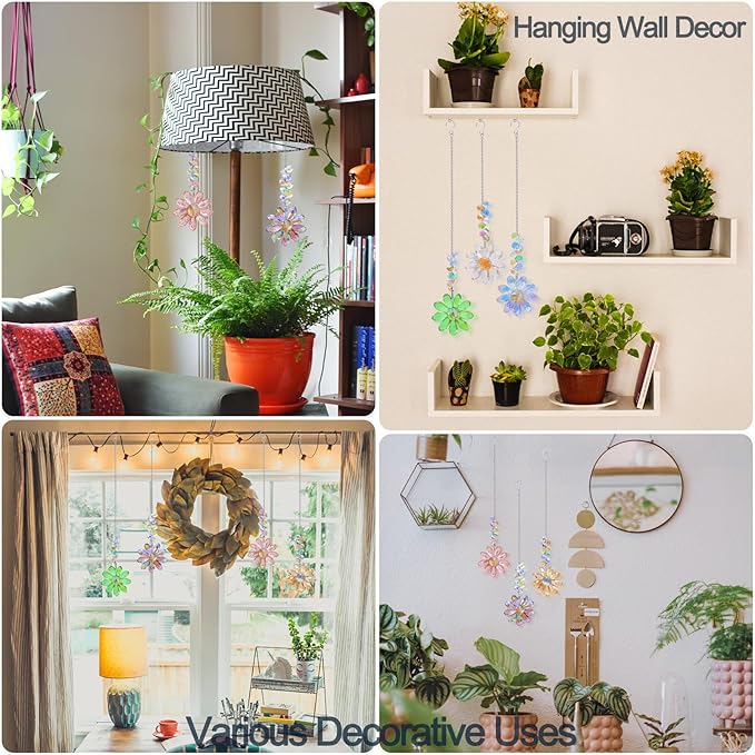 - Crystal Flower Suncatcher: 6 crystal flowers in different colors to create a vibrant and colorful space, and the flowers will bring countless rainbow dots in the sunshine for you