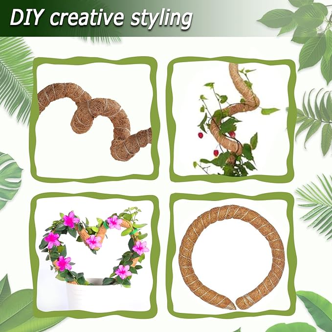- EASY TO USE--Bend the moss pole into the shape you like: heart, arch, snake, spiral ..... Then insert the handle of the moss pole deeply into the soil, and finally just tie the climbing plant stems to the indoor potted plant pole with twine.