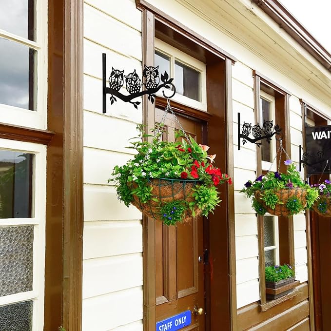 Plant Hangers Outdoor, Metal Hanging Plant Bracket, Plant Hooks for Hanging Baskets, Bird Feeders, Wind Chimes Indoor, Lantern, Flower Pot, Wall Mount Plant Holder with Screws (Owl)