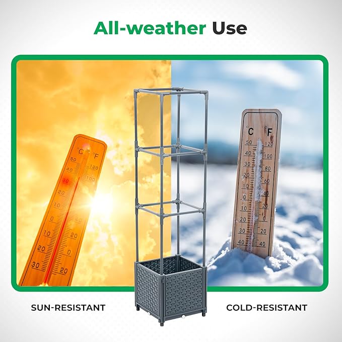 - HIGH QUALITY & DURABILITY: This tomato planter box is made from fade-proof and reinforced PP material, featuring a sturdy alloy steel trellis frame for minimal maintenance. It excels in all-weather conditions, from scorching summers to frigid winters, making it a versatile choice for outdoor plant decoration.