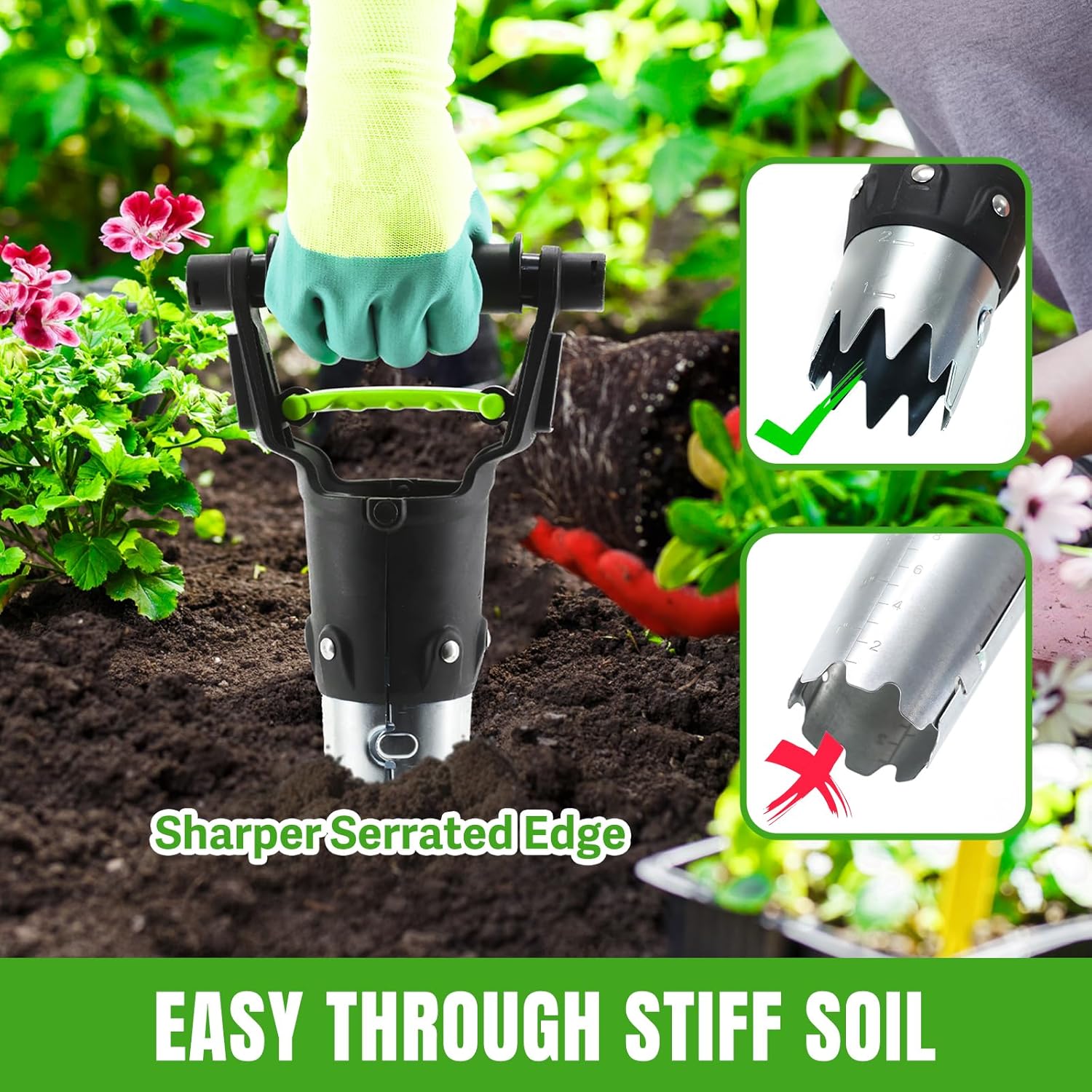 - EFFICIENT TRANSPLANTING: Ordinary digger shovel often creates holes that are excessively wide and sometimes not deep enough. This garden bulb planter tool is fantastic—simply twist and turn it once in the ground, and you'll have the perfect-depth hole for planting bulbs. The Automatic soil release mechanism accelerates the planting process, saving a considerable amount of time.