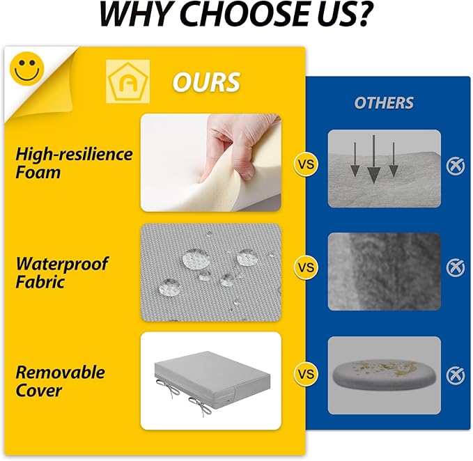 - Upgraded Cushion Foam: Thick, powder-free, high-resilience foam quickly regains shape after use, providing soft support and lasting comfort. It helps relieve pressure, enhances relaxation, and increases durability for long-term performance