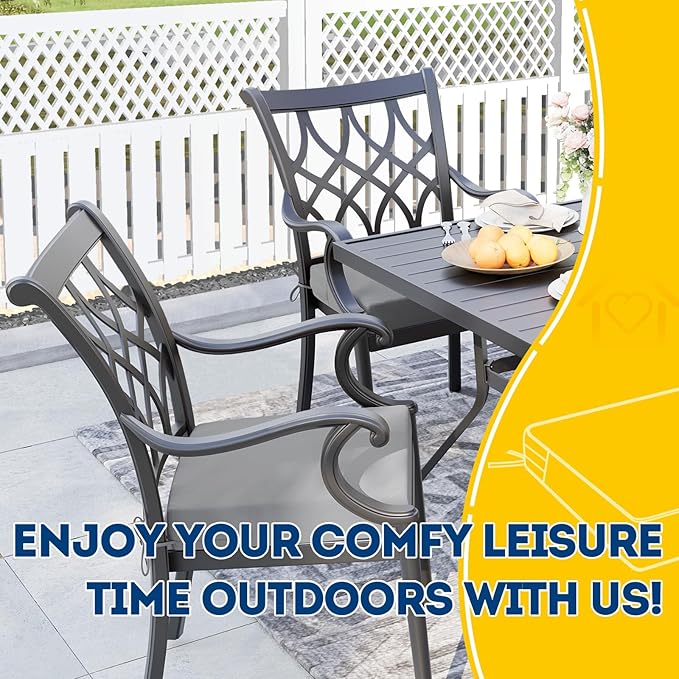 - Wide Use & Tips: These outdoor dining chair cushions fit pools, patios, balconies, decks, backyards, and gazebos. Foam inserts and covers are packed separately in bags and placed in one box—check all parts. Easy assembly required