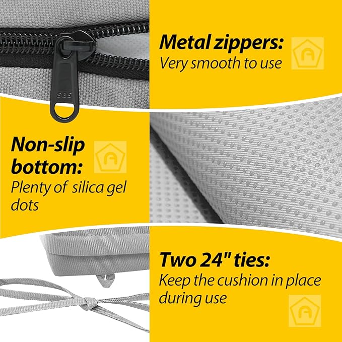 - Non-slip Ties and Piped Edge: The two non-slip ties can be fastened to your furniture to keep the outdoor cushion in place
