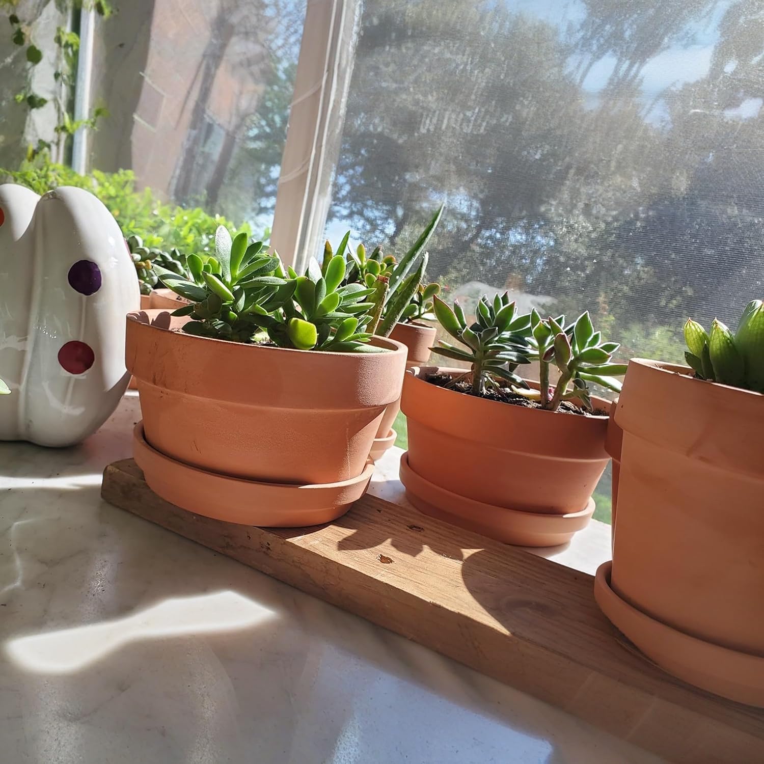 - [TERRACOTTA] Terracotta pots are classic planting pots, with a neutral and warm color that makes almost any plant look great. Terra cotta dries out more quickly than other mediums. Suitable for propagating seedling, collecting succulents and small plants like succulents, cactus, herbs, moss ball, and bring so much positivity.