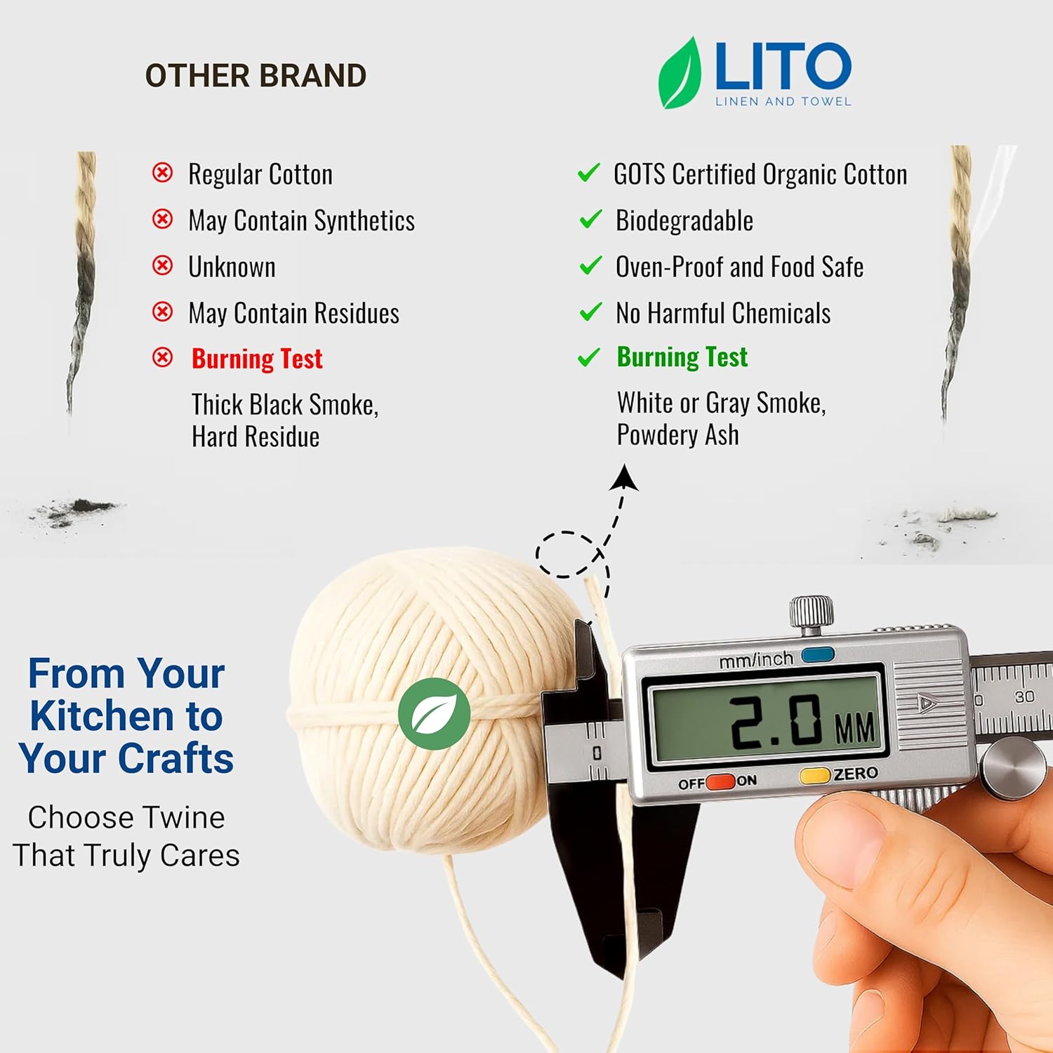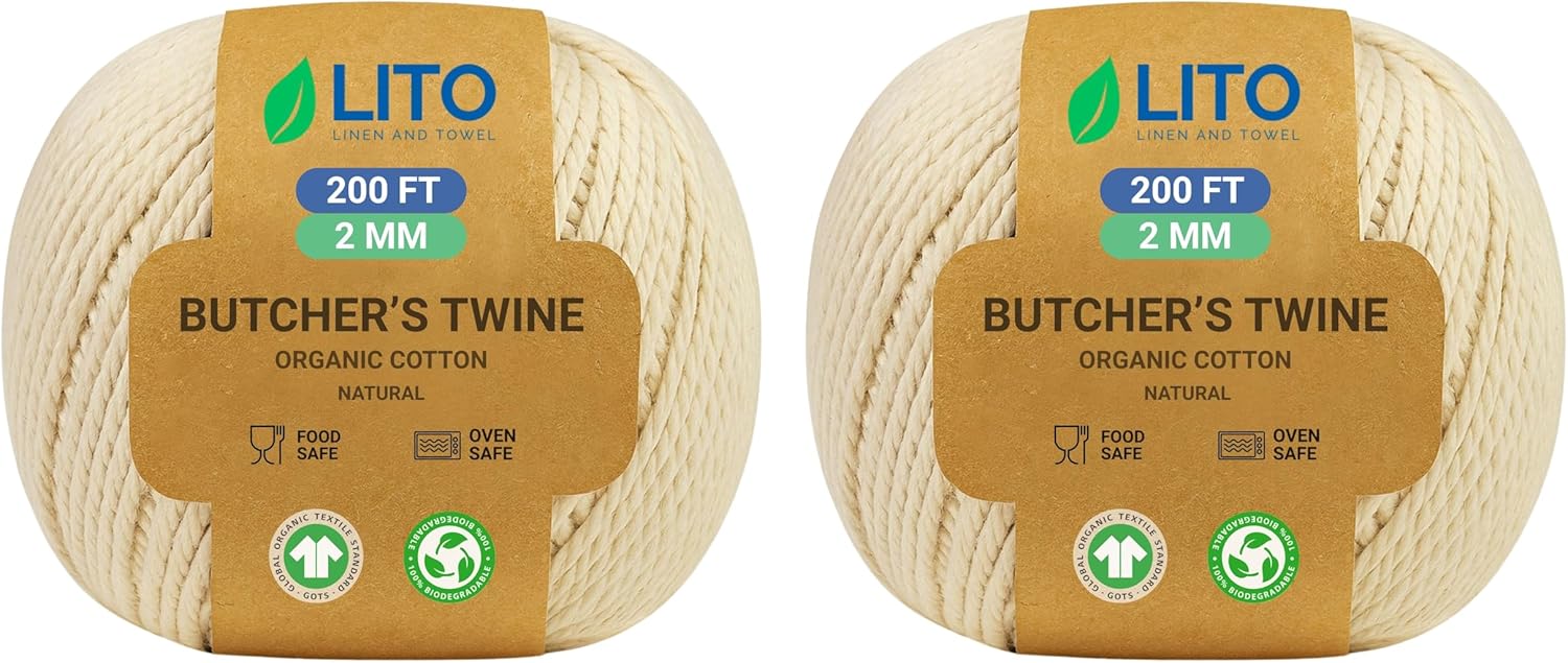 Organic Butcher’s Twine for Cooking & Trussing – 2mm Heavy-Duty Natural Cotton Kitchen Twine 400 Feet – Food-Safe, Oven-Safe String for Meat, Turkey, Baking, & Crafts