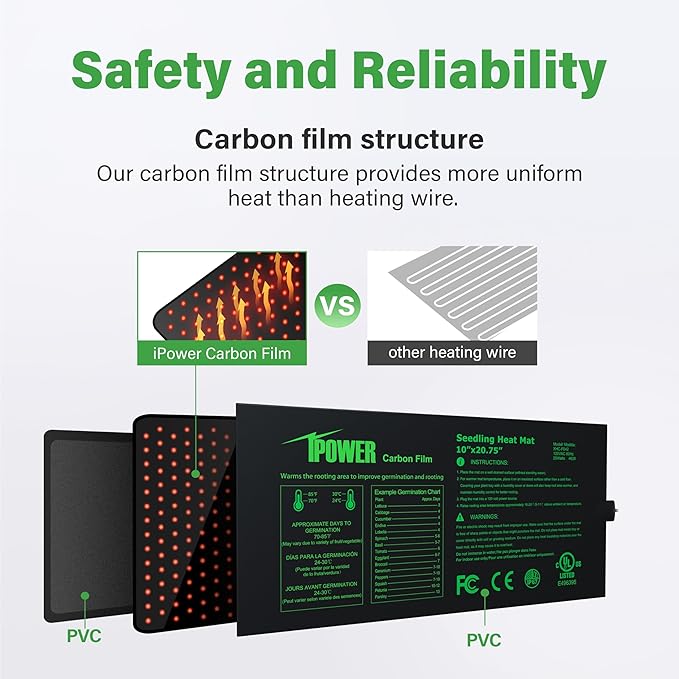 - Reliable heating: the mat is made of upgraded heating film, professionally ensuring uniform heating. The mat warms root area 10-20℉(5-11℃) over the ambient air temperature, perfect for seeding and cutting propagation,