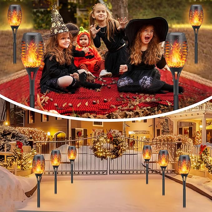 12-Pack Solar Flickering Flame Torches – Waterproof Solar Garden Lights, Outdoor Solar Lights for Yards, and Flame Torches for Patio and Pathway Decorations