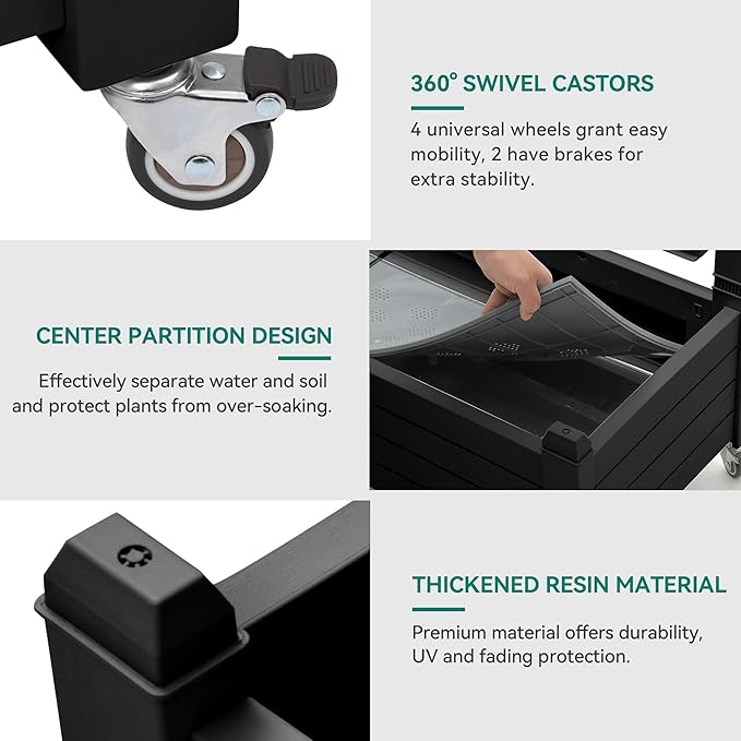 - Generous Capacity and Mobility: Measuring 3.6 x 1.5 x 5 feet, this raised planter bed with trellis holds up to 21 gallons of soil; Equipped with four swivel wheels, it offers easy mobility, making it ideal for versatile gardening needs