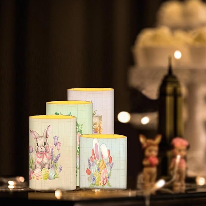 Flameless LED Battery Candles Waterproof Pillar Candles Tealights with 18-Key Timer Remote Colorful Lights for Indoor Outdoor Party Home Easter Decorations, Easter Bunny Egg Floral Retro