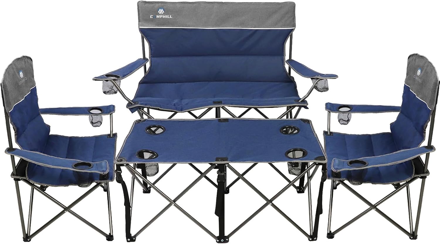 CAMPHILL Camping Chair Set of 3, Outdoor Folding Camping Chairs for Heavy People with Cup Holder & Carry Bag,Collapsible Chair Include One Sofa Chair and Two Single Chair,Support up to 500lbs