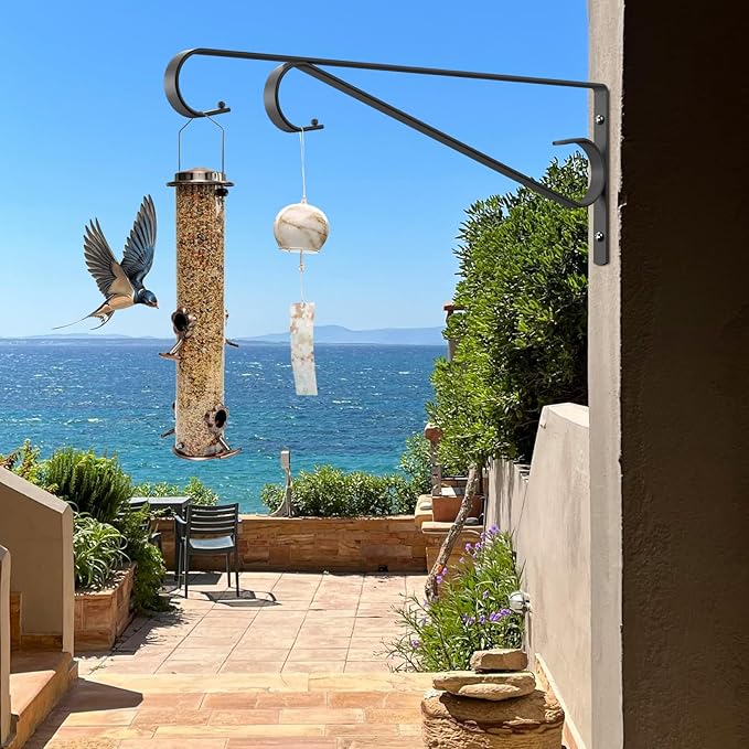- 【Friendly Service】: Our outdoor hooks for hanging measures 15.4"(L) X 5.3"(H) X 0.6 "(W), making it the exact size for most potted plants. We offer comprehensive customer service. If you have any questions or suggestions about the bird feeder hooks, please feel free to contact us.