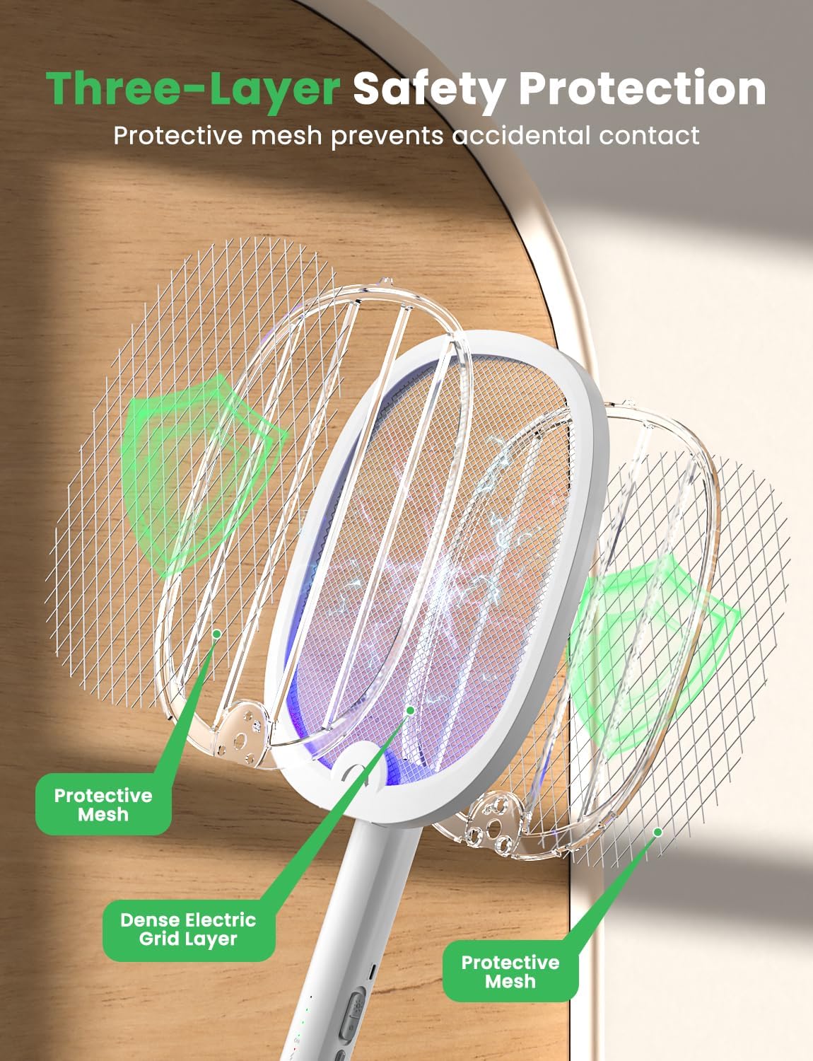 - New Dense Middle Power Mesh to Zap Bug Better: YISSVIC fly killer indoor has improved the density of the center mesh.The expanded charging cable of YISSVIC fly killer indoor no longer limits its using space. the middle layer is power grids. there's no zapping when the object touched the metal protective mesh surface