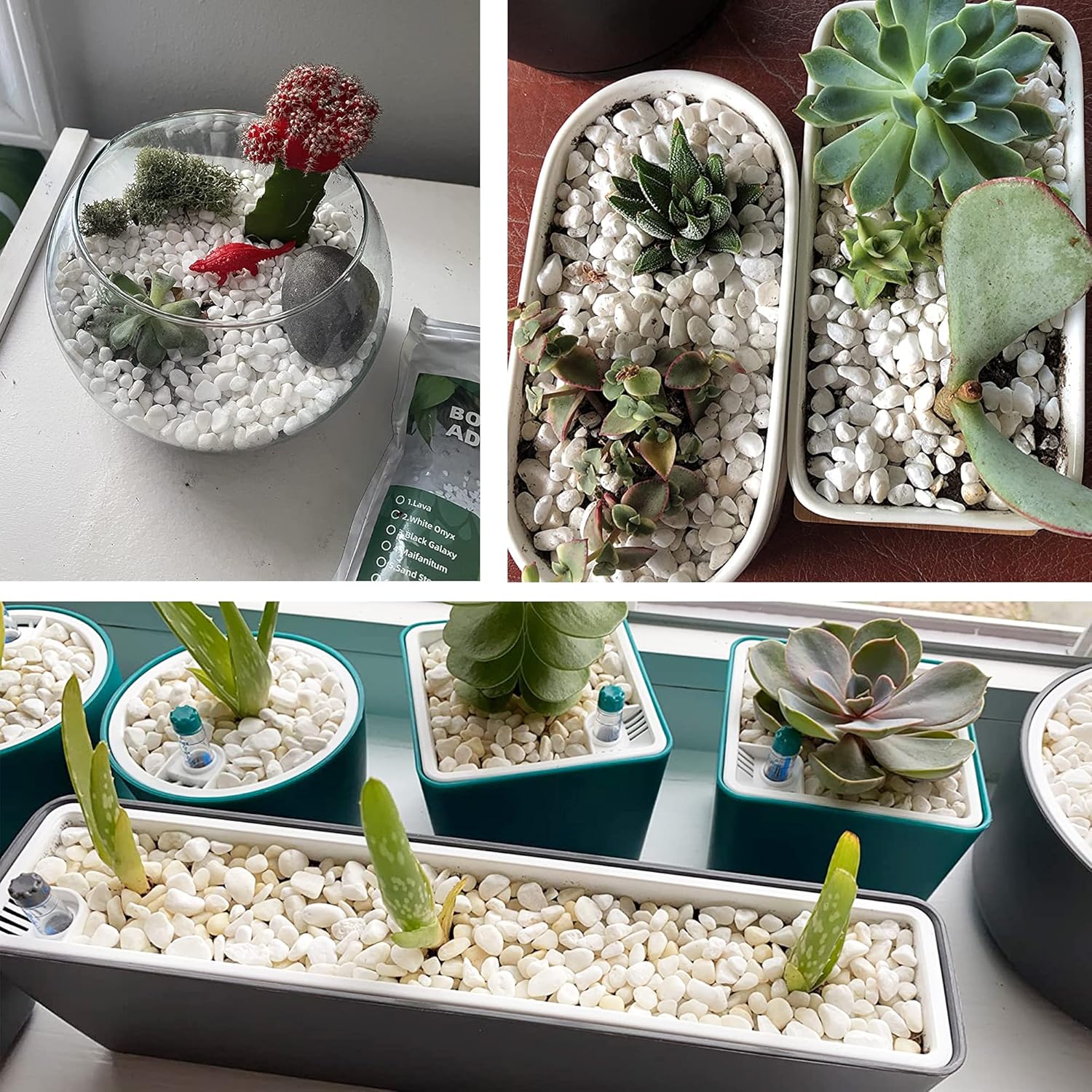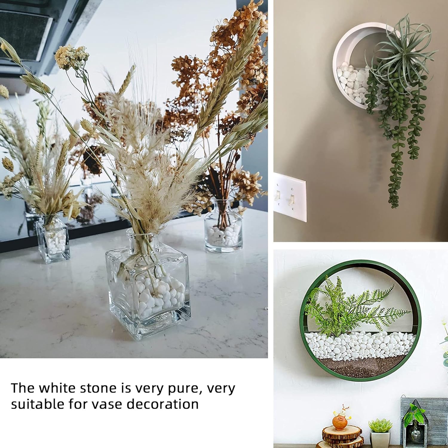 - 🌼【WIDE USES】Common applications include succulent containers, potted plants,vases,cactus,bonsai,landscapeand terrariums.It is perfect for home decor and a creative interior and exterior design. The possibilities are endless with these floral arranging white gravel rocks!