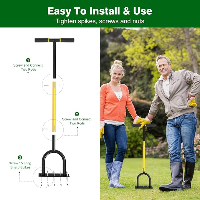 - Easy Installation & Portability: Our spike lawn air aerator comes with all the necessary tools and instructions for quick and easy installation. It can be assembled in just a few minutes and disassembled for convenient storage and transportation.