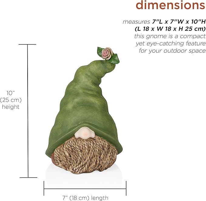 - CUTE GARDEN DECOR: This silly gnome is topped with a green hat and a detailed sculpted realistic rope beard, and the addition of a flower on the right side of the hat adds a playful, nature-inspired element