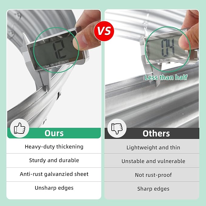 - 【Heavy-duty Thickening Galvanized Sheet】: Gartist outdoor raised garden bed is made of Q195 double-side galvanized steel sheet. Compared with ordinary galvanized sheet, the 1.2mm thickened galvanized sheet is more durable and sturdy, not easy to deform, and has improved anti-corrosion and rust resistance. It is more resistant to high temperatures and freezes, making it very suitable for outdoor use. Our raised beds for gardening with double layered rolled edge design, no need for rubber strips