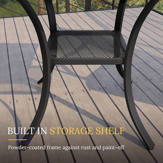 VICLLAX 27.5" Outdoor Round Patio Table for Lawn Garden, All Weather Metal Round Patio Dining Table with Storage Shelf, 2 Person Small Patio Table, Grey Wood-Like Tabletop