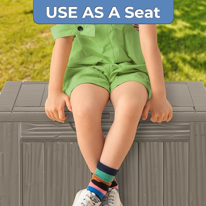 - Large Capacity: This 35-gallon deck box offers ample storage space for your outdoor accessories, and it has a 150-pound weight capacity and can be used as a separate patio seat or indoor table.