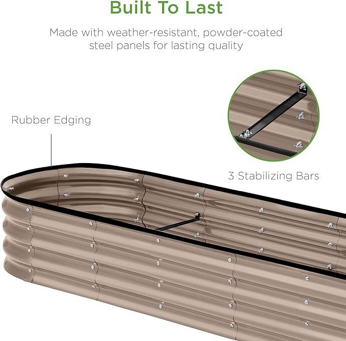Best Choice Products 8x2x1ft Outdoor Metal Raised Garden Bed, Oval Deep Root Planter Box for Vegetables, Flowers, Herbs, and Succulents w/ 108 Gallon Capacity - Taupe
