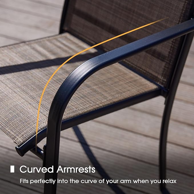 - 【Patio Dining Chairs】 Slight lawn chairs are stackable for space-saving and portability. Breathable patio chairs feature good airflow, UV, fade, and stain-resistant, comfortable to sit in the courtyard or garden on a hot summer day