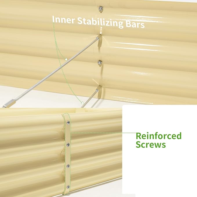 - Stable and Solid Construction: Double card frames on the two sides of the sheet make the raised garden kits more durable and stable, and 4 reinforcing rods make the whole raised garden bed more stable. Never worry about its distortion or collapse and it presents a much more beautiful design.