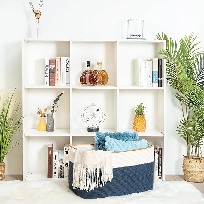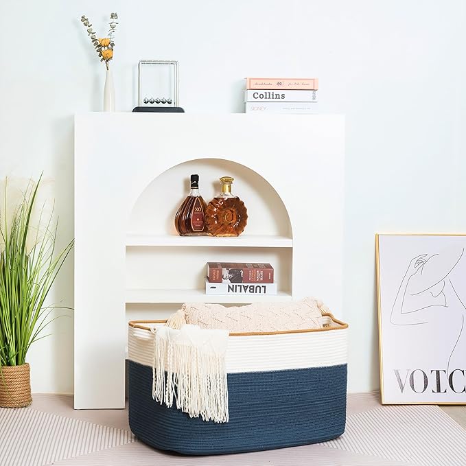 - Extra Large Cotton Rope Storage Baskets - Measured as 22"x17"x12", this large rectangle basket is big enough to store bulky items like extra blankets, pool towel, shoes, comforters, duvets, throw pillows, cushions, and stuffed animals, winter clothing, laundry, and more. It offers plenty of space for smaller miscellaneous items too, like books, magazines, and dog toys, to keep your living space neat and tidy!