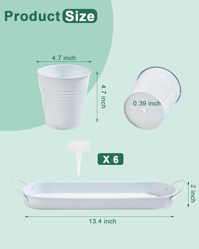 - 【Indoor Herb Garden Kit】The set includes 3 white galvanized herb planters (4.7 inches each) and a 13.4-inch tray, plus 6 plant labels for easy identification. Perfect for starting your own indoor herb garden on the windowsill or kitchen counter.