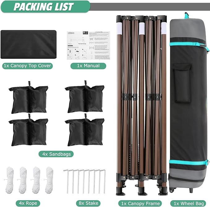 - 【Included Accessories】 1x Commercial Grade 10x20 Pop Up Tent Frame, 1x Top Cover, 6x PU Coated Panels (4 x Sidewalls with Windows and 2x Sidewalls with Zippers), 4x 420D Oxford Fabric PVC Coated Sandbags, 8 x Ground Pegs, 4x Windproof Ropes, 1x Rolling Bags, 1x Manual. Please feel free to contact us, we will give you the best help. Choosing us means choosing a comfortable life.