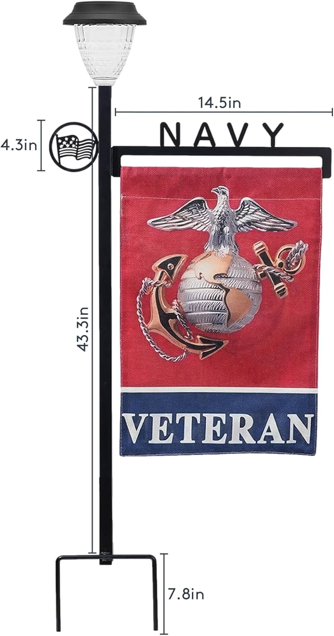 Navy Garden Flag Stand Holder with Solar Light Garden Flag Pole With American Flag Gifts Lawn Yard Flag Holder Stake for Flag Outdoor Lawn Décor