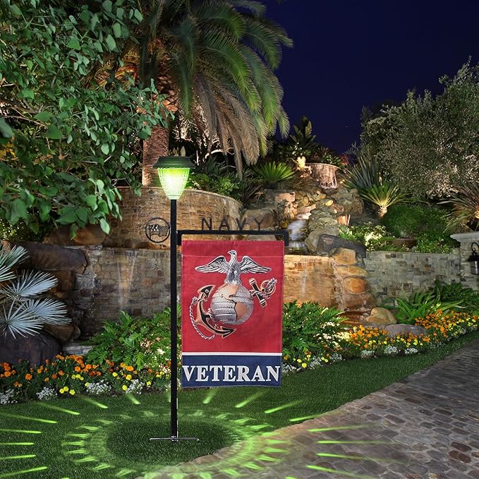 - Unique Design Garden Flag Pole: Garden flag stand holde with American Flag and Veterans decoration, Add a unique style and luster to your yard.