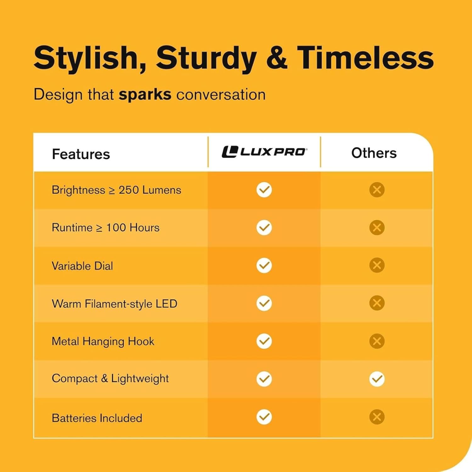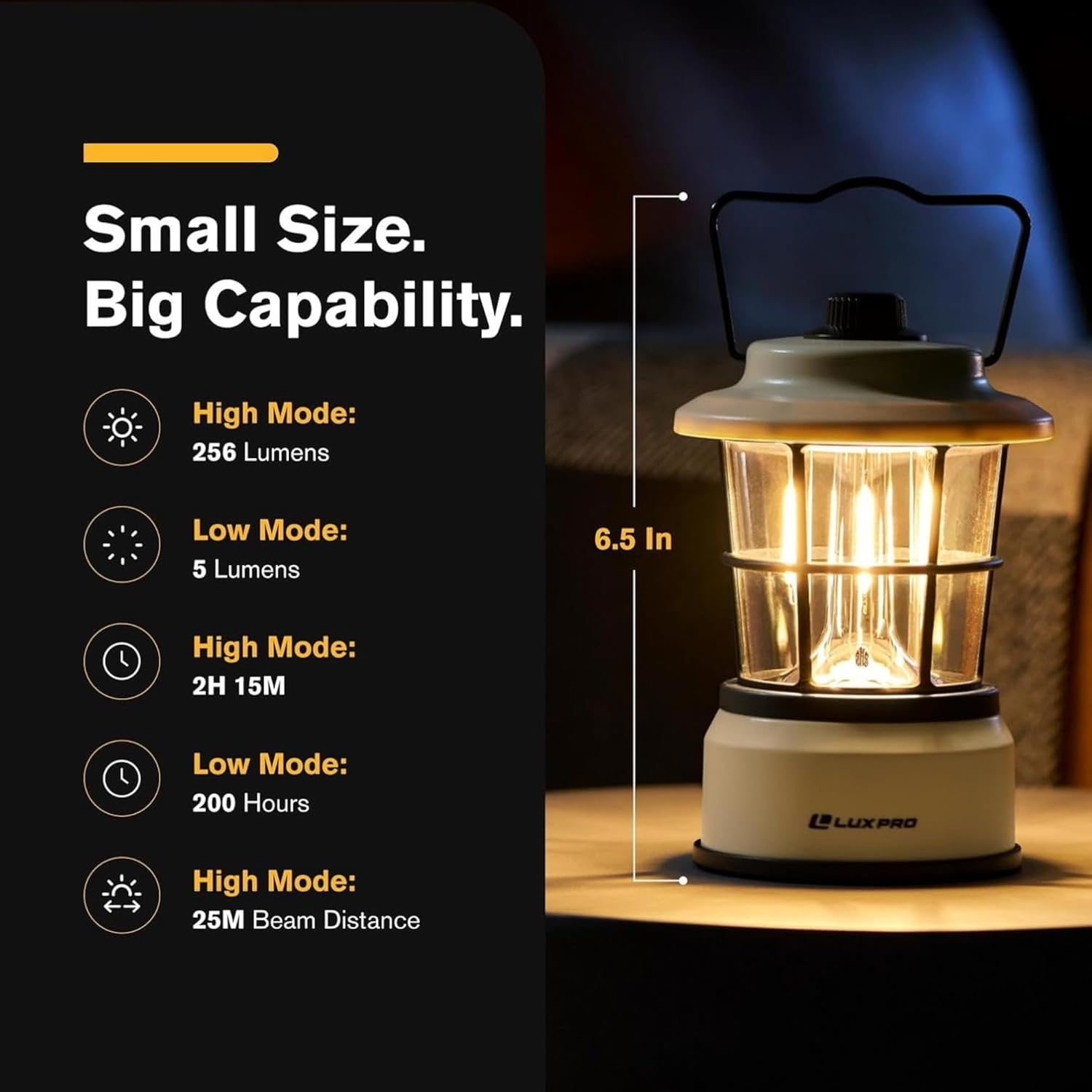 LUXPRO Retro LED Lantern - Battery-Powered Emergency Lantern - Water Resistant - Bright LED Lamp for Indoor & Outdoor Use - Use for Tents, Hiking or Hurricane Prep (Beige, Pack of 2)
