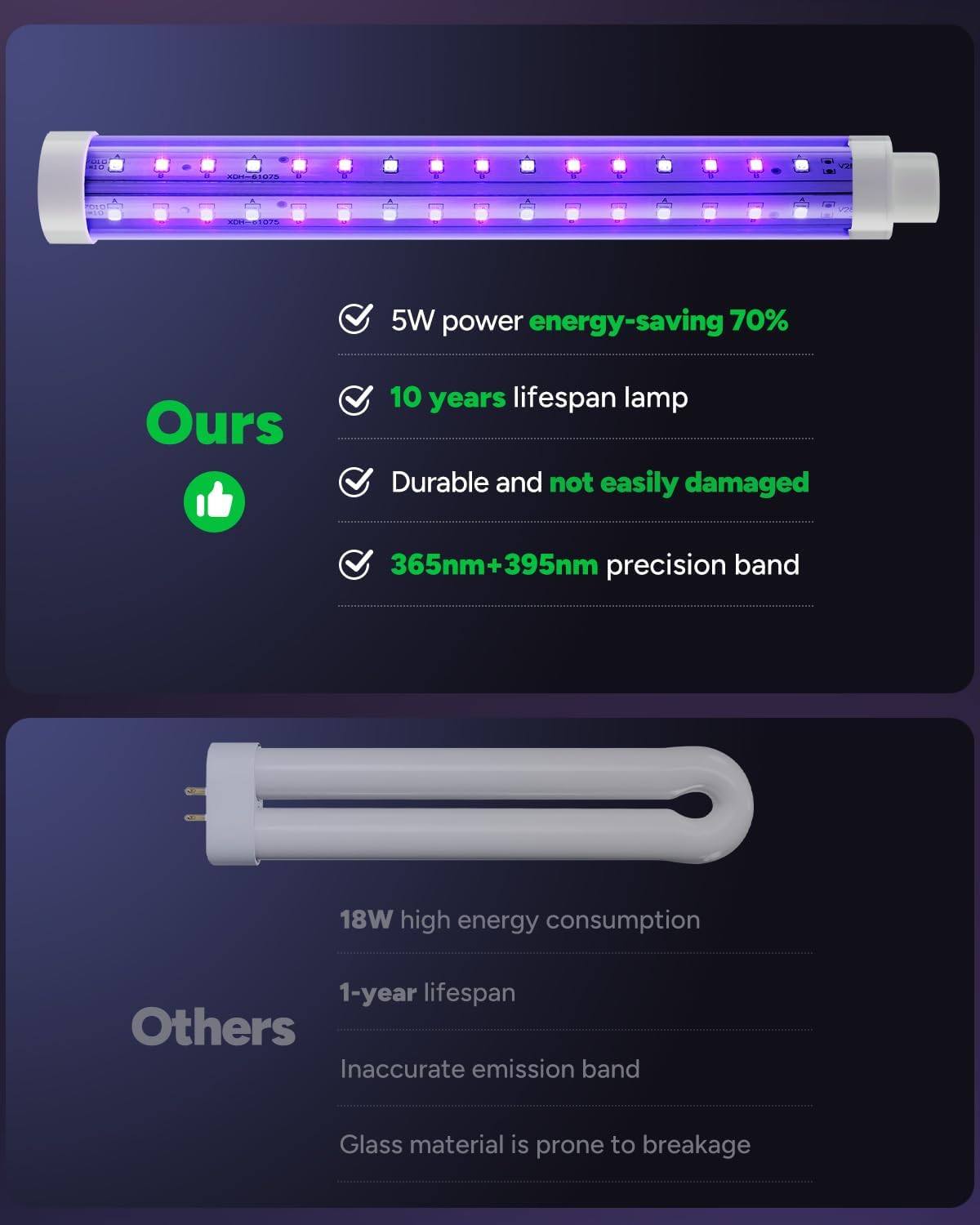 - Energy-efficient Features: The fly killer boasts LEDs with a lifespan of up to 10 years, reducing energy consumption by over 70%, and does not require bulb changes. This electric bug zapper is U.S. EPA registered.