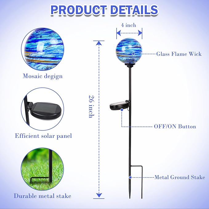 Solar Outdoor Decorative Lights Color Swirl Solar Garden Stake Glaze Glass LED Solar Garden Globe Lights Outdoor Decorative Lights for Pathway Yard Lawn Decoration 2 Pack Blue