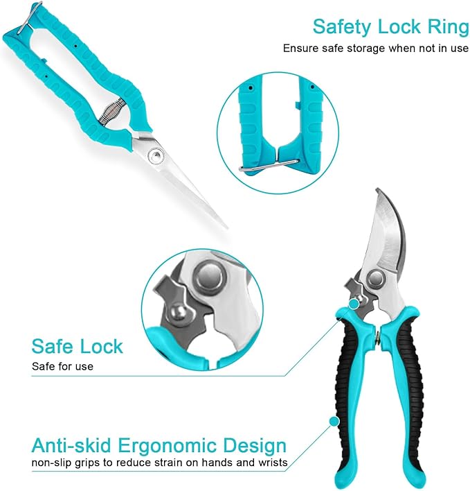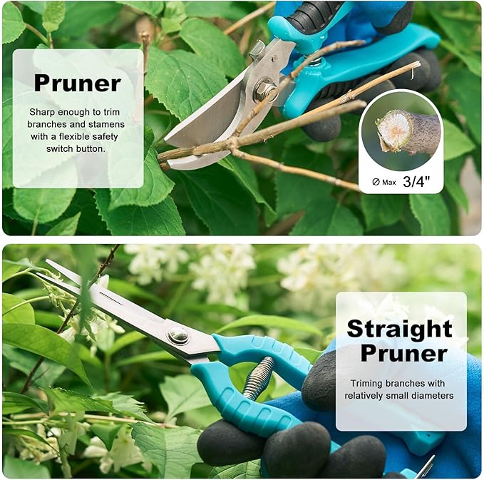- ππ πππππ ππππππ ππππ ππππ: Our premium gardening tool set can meet most gardening needs, which includes a large trowel, small trowel, cultivator, hand rake, weeder, pruning shears,pruner,wedding knife, gloves, Thickened Repotting mat,and an enlarger oxford cloth tote to keep them all organized. These tools are robust and made to last, with stainless steel blades that can cut through even thick weeds with ease