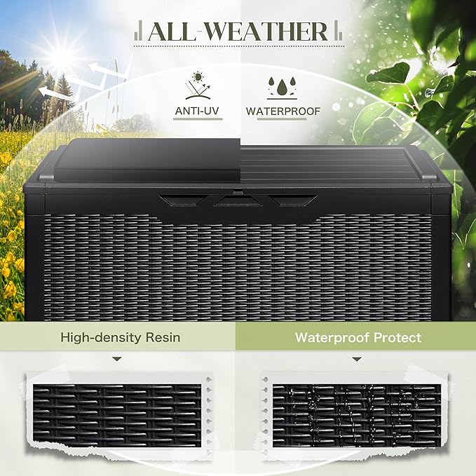 - RESIN MATERIAL: The storage box is made of environmentally friendly resin material, this material has good anti-color fading and waterproof and UV resistance, and very good toughness and durability.