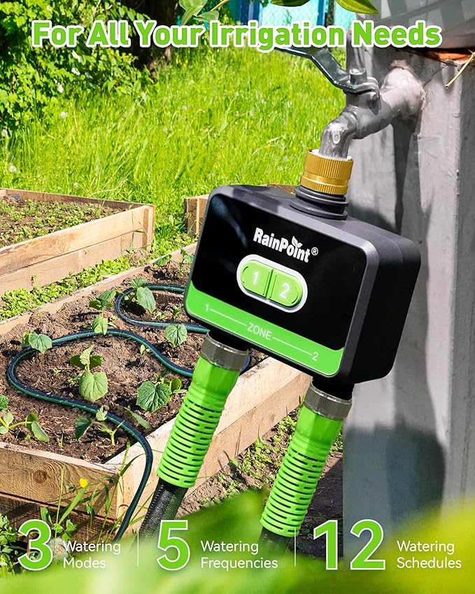 RainPoint WiFi Water Timer for Garden Hose with Brass Inlet, 2-Zone Smart Hose Timer, WiFi Irrigation Controller, Automatic Sprinkler Watering System for Lawns and Yard