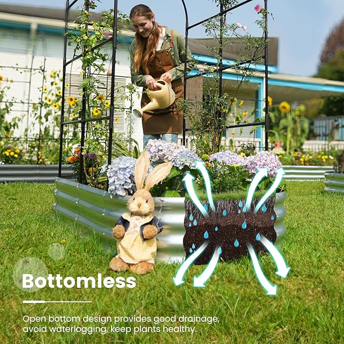 - 【Safe Rolled Edges】The edges of the metal planter raised beds are meticulously crafted with a rolled edge process, eliminating sharp edges to ensure your hands stay safe from cuts during assembly and planting, letting you safely enjoy the pleasure of gardening.