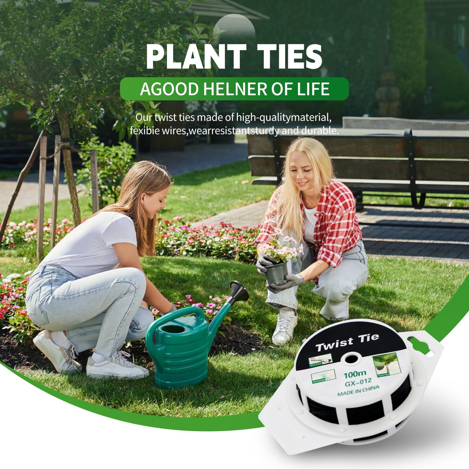 (2 Reels) Garden Wire, Twist Ties Heavy Duty with Cutter 328 Ft Multi-Function Black Coated Tape to Support Plant Tie Up Bags for Home Office Black(328 Feet / 100 m)