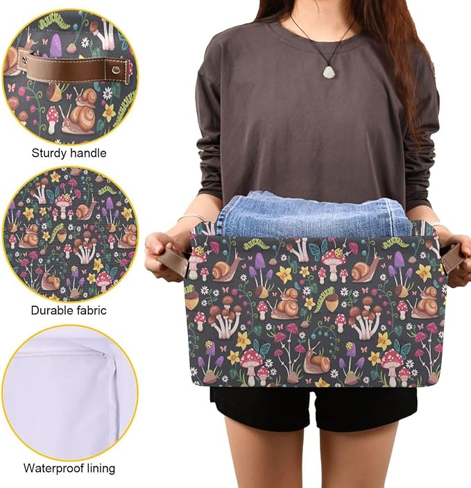 Mushroom Snail Rectangular Storage Basket Organizer Bin Shelf Baskets For Clothes Gifts For Home Office Dorm