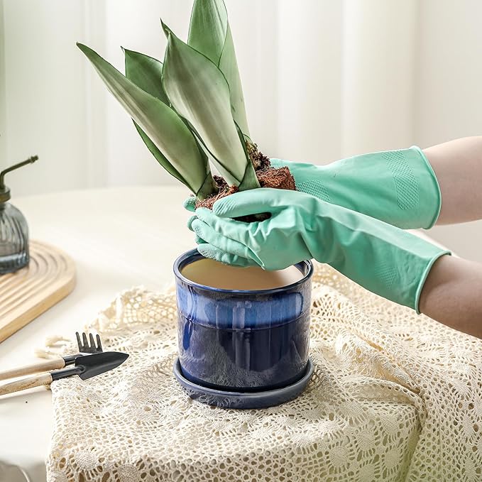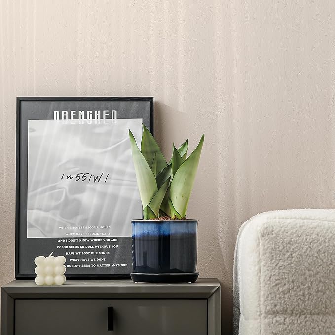 - Each One is Unique: During the high-temperature firing process, the blue glaze on the surface of the flower pots randomly spreads, making the gradient effect of each pot unique. There are no two flower pots that are the same.